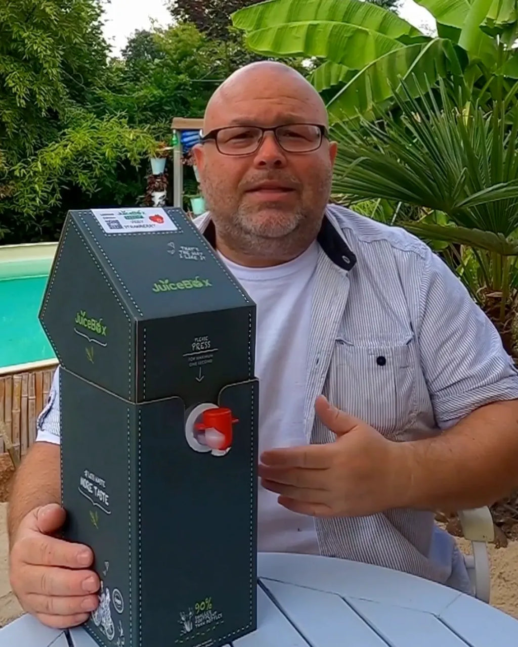 The JuiceBox™ is a 2-Liter box full of delicious liquid concentrate that you can easily tap yourself. Imagine a large beverage dispenser that is eco-friendly because it replaces single-use plastic bottles. It’s super easy: Open the lid, press the tap, and fill your glass with your favorite drink, just add water and enjoy!